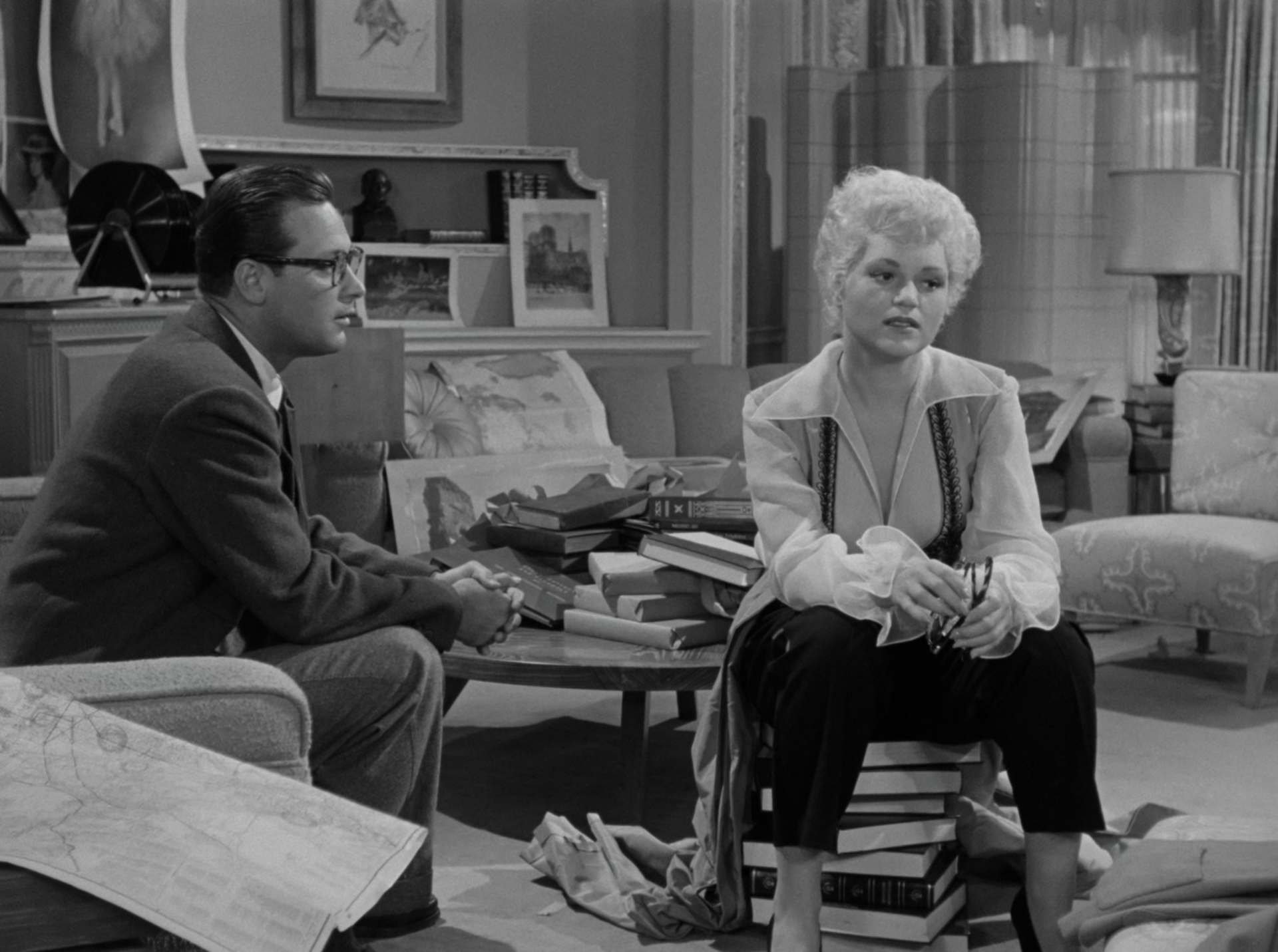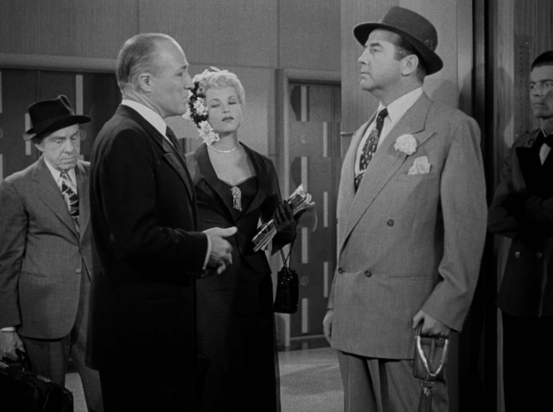 Actors: Judy Holliday, William Holden, Broderick Crawford, Howard St. John, Frank Otto, Barbara Brown, Larry Oliver.