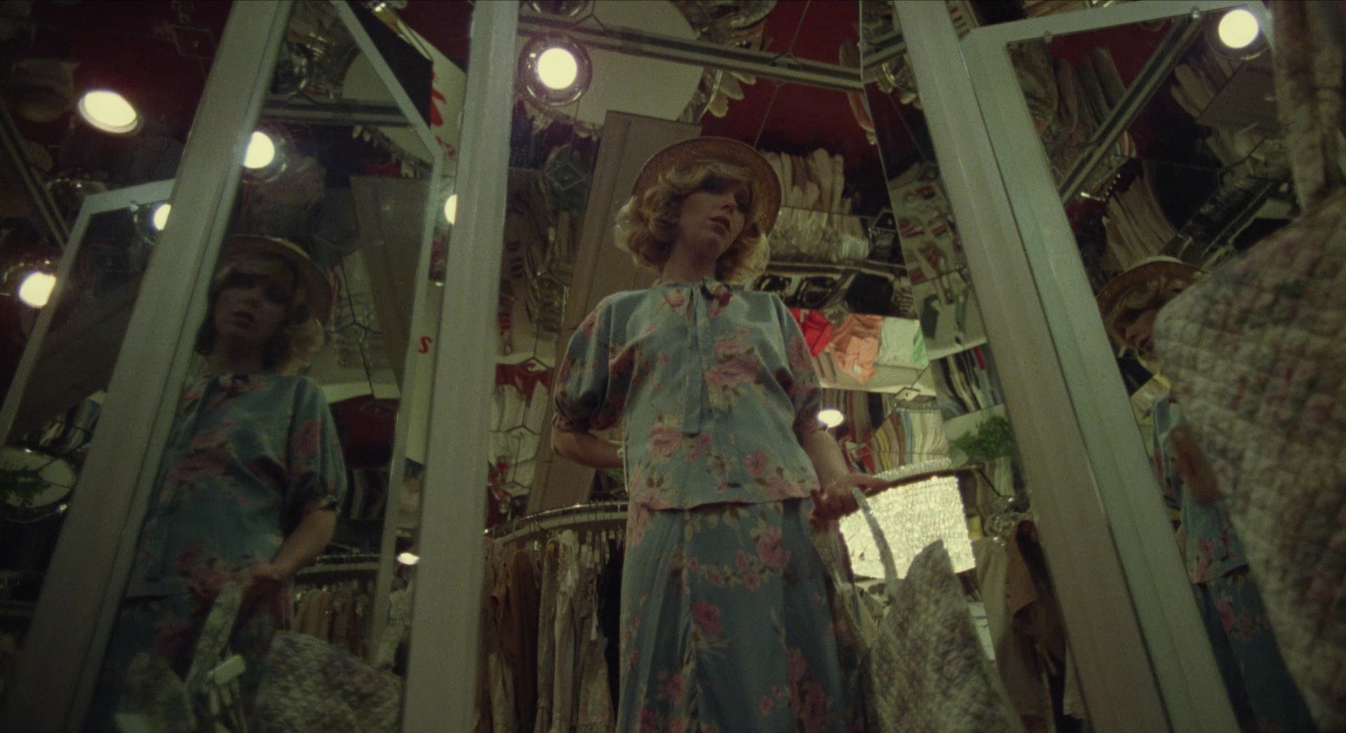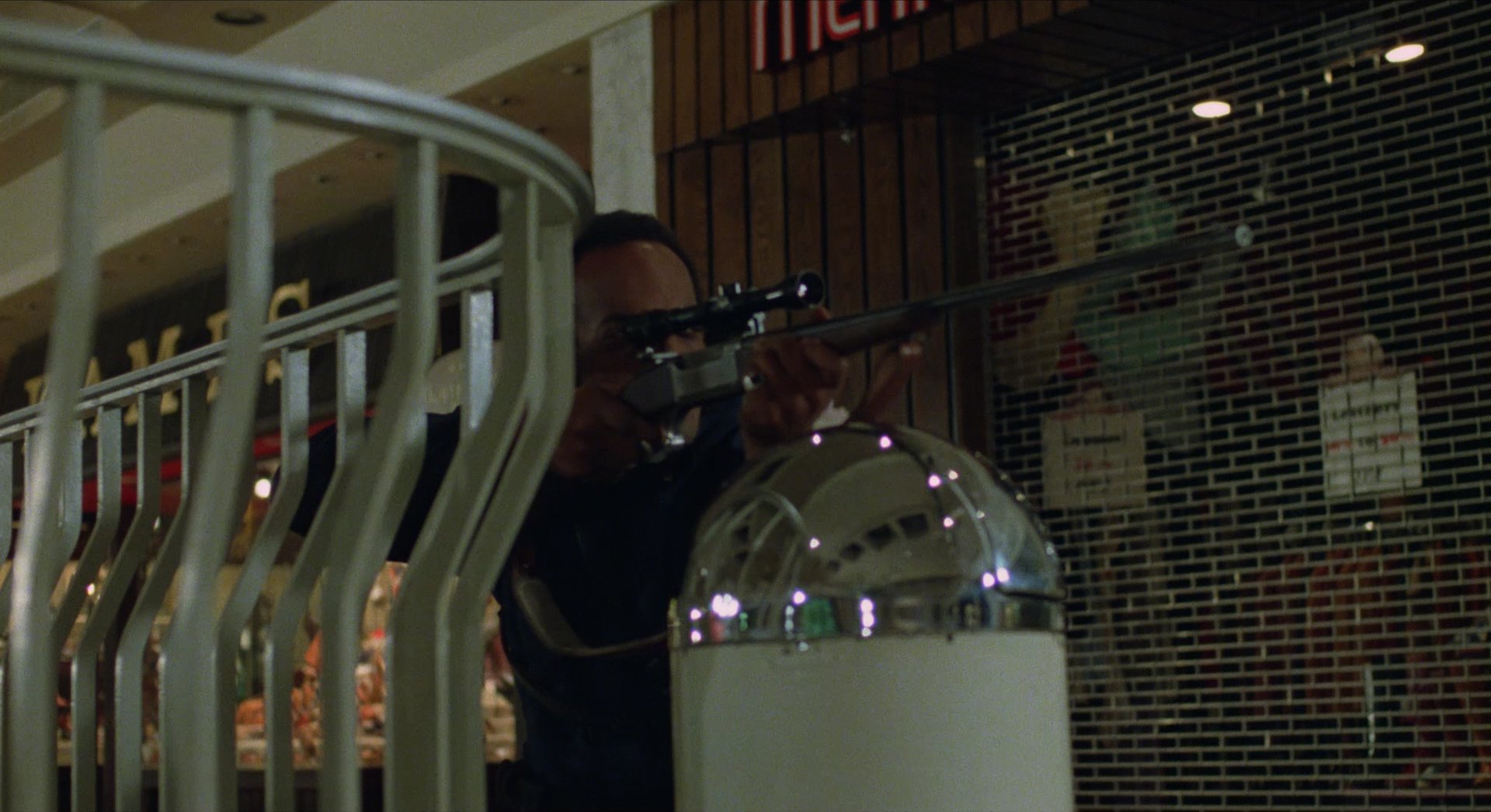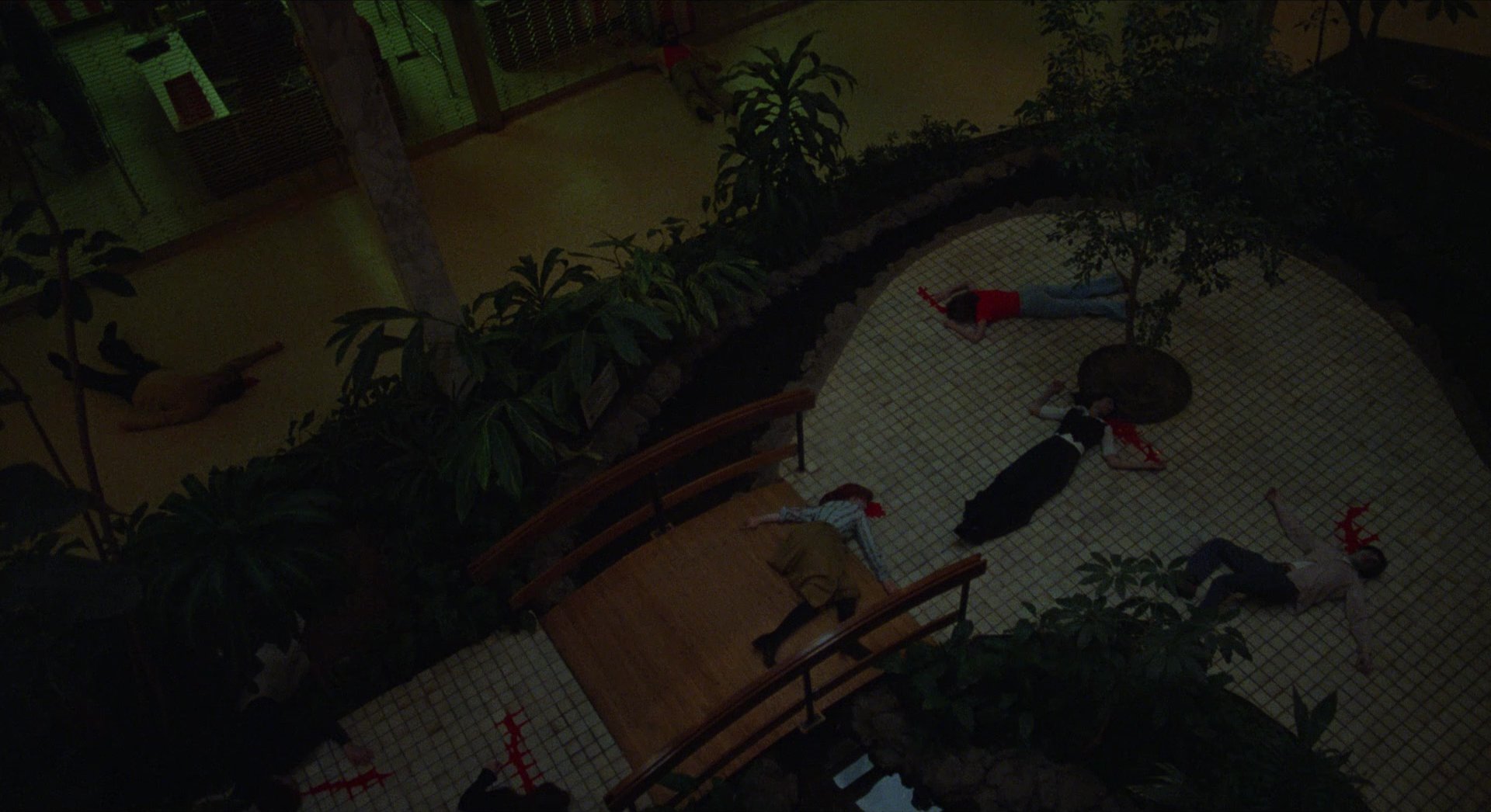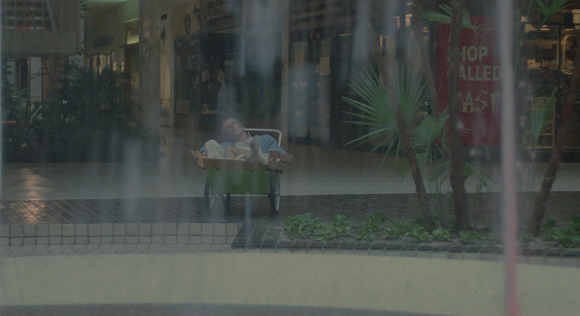 Principal photography took place inside the Monroeville Mall, with filming largely occurring at night after the mall had closed. This location serves as the film’s primary visual concept and as a metaphor for consumer culture. Long interior corridors, large open atriums, brightly lit retail spaces, and colourful storefront displays create a vividly artificial environment that contrasts sharply with the violent chaos unfolding within.