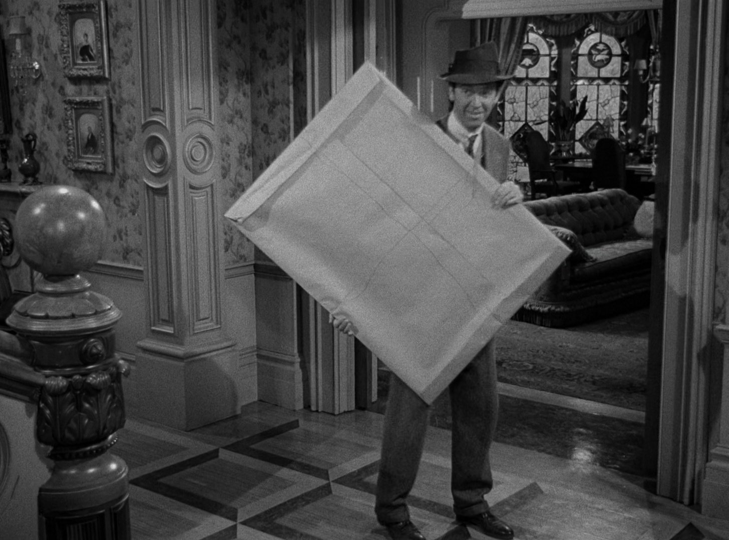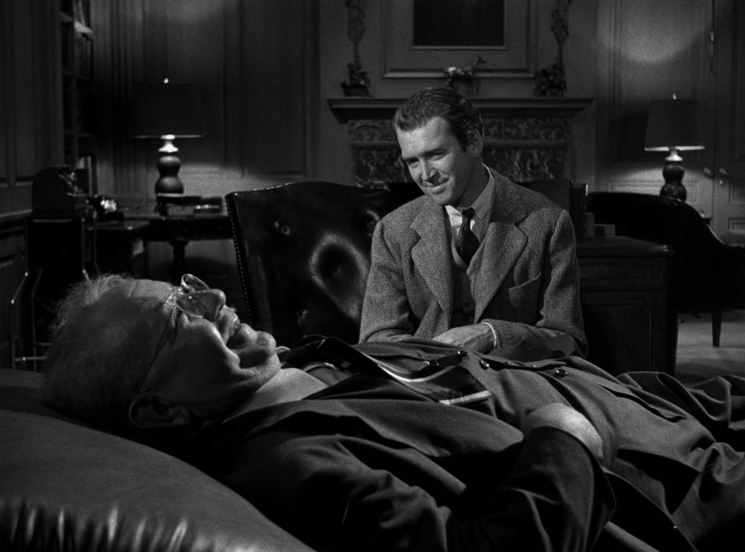 That’s the visual trick Harvey achieves with great blocking and composition. While the film avoids confirming whether Harvey is ‘real’, it plays around with the idea of the fabled creature throughout. You’ll never see Harvey, but it’s as if he’s sitting next to Stewart, who delivered a delightful performance while talking to his invisible friend.