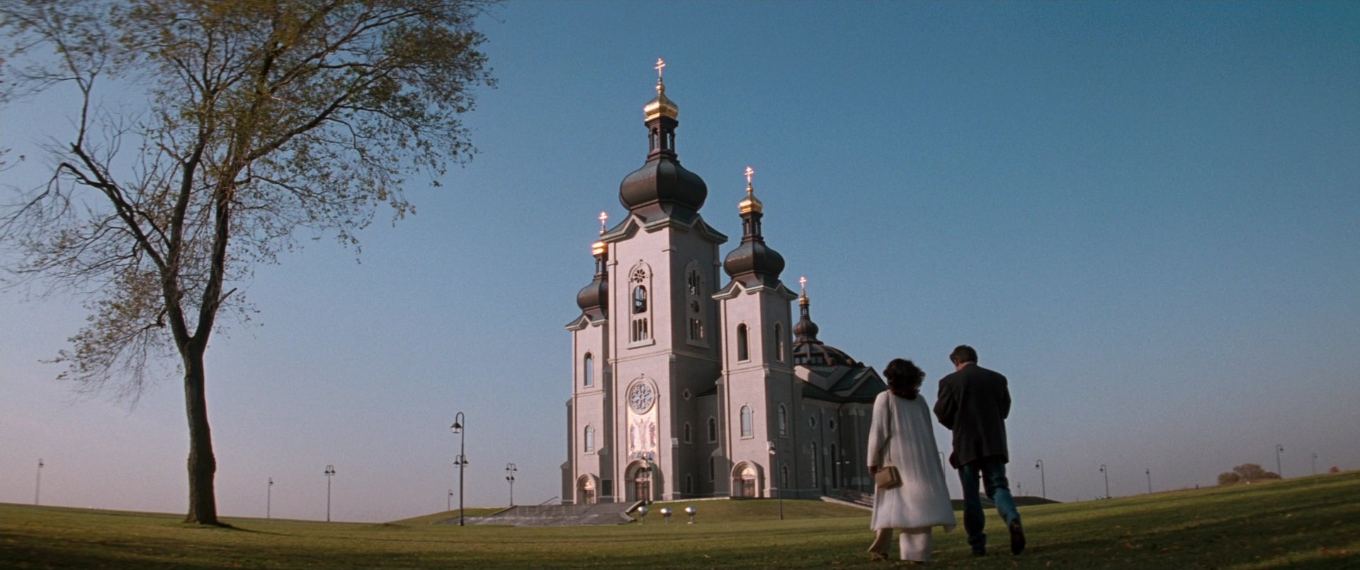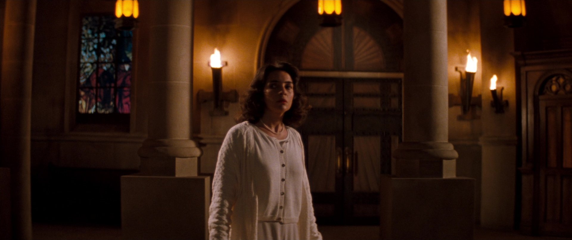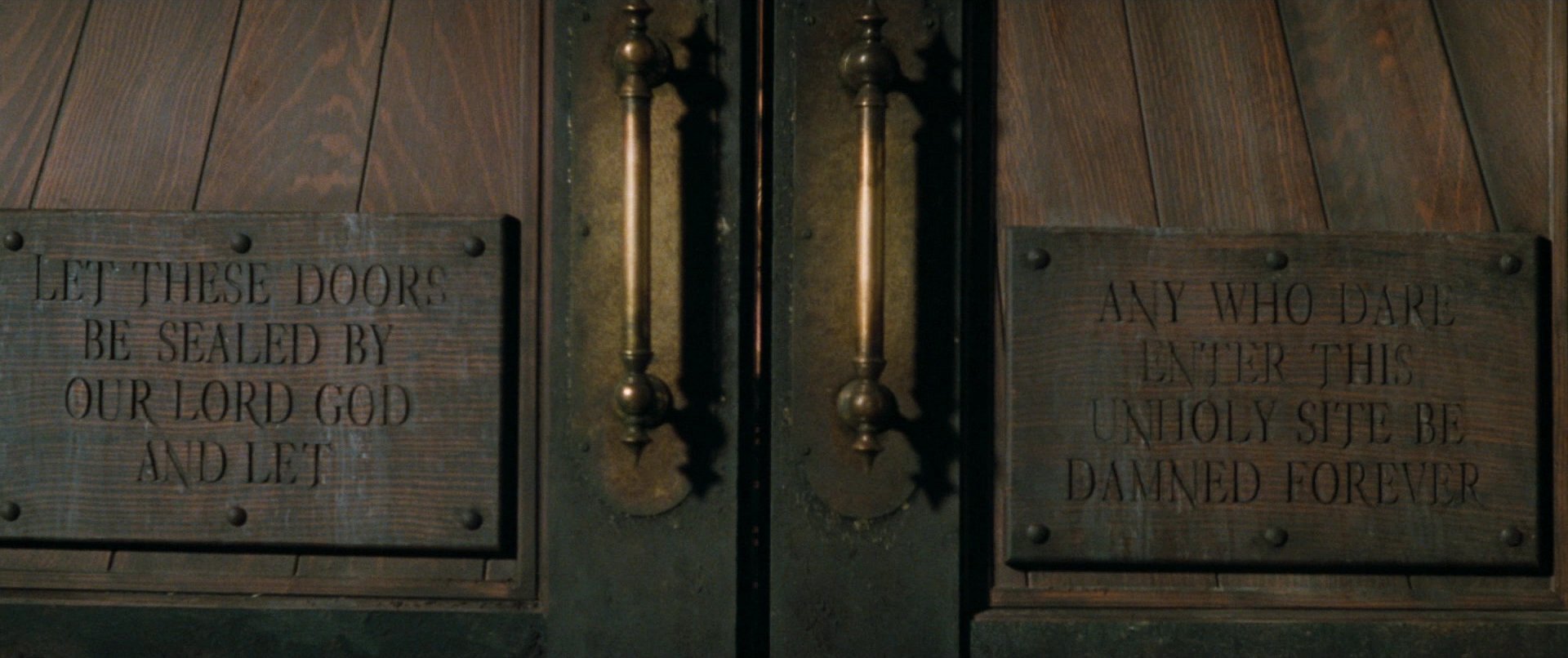 Hobb’s End is presented as an exaggerated horror landscape, complete with deserted streets, ominous churches and distorted architectural spaces. The environment appears suspended outside of time, creating an atmosphere fluctuating between dream and reality. As Carpenter structures the story around a gradual breakdown of certainty, the town becomes the physical manifestation of that psychological disintegration.