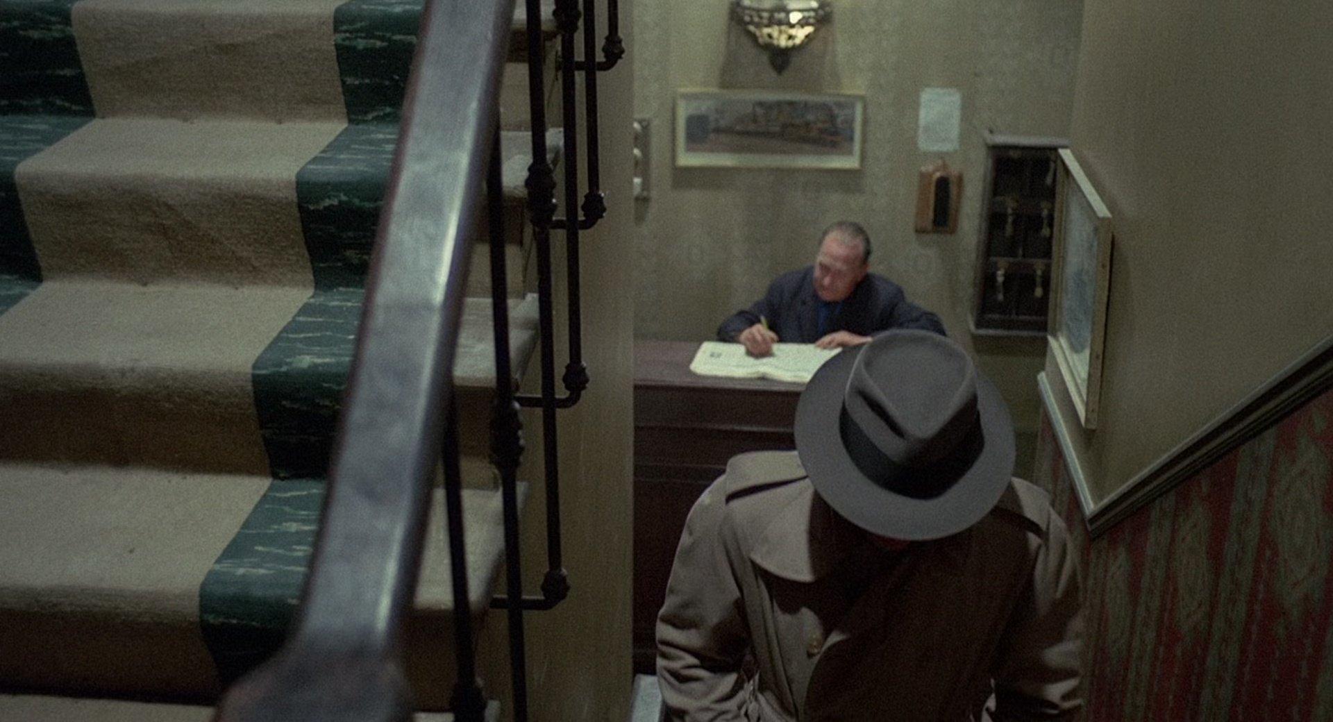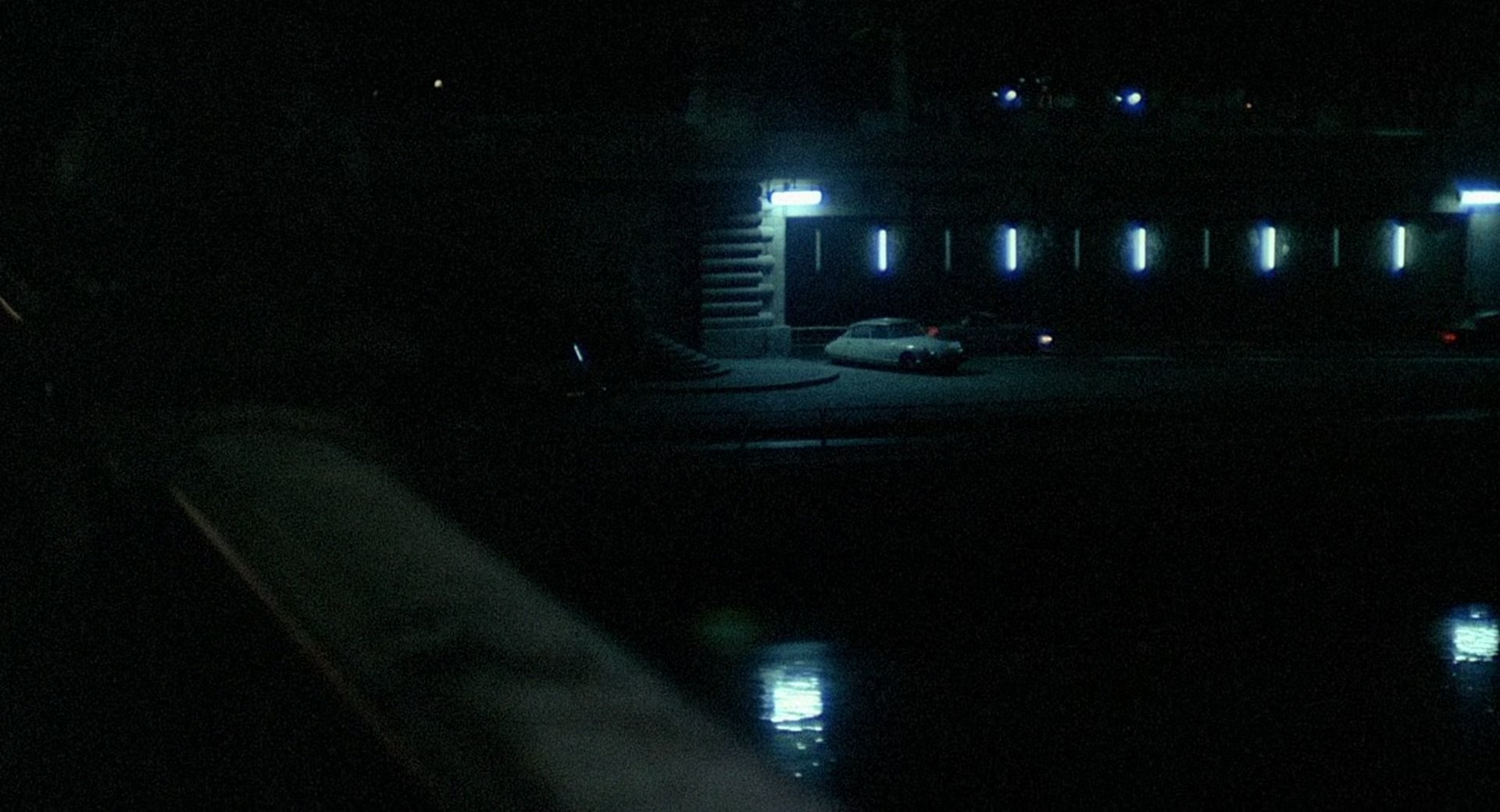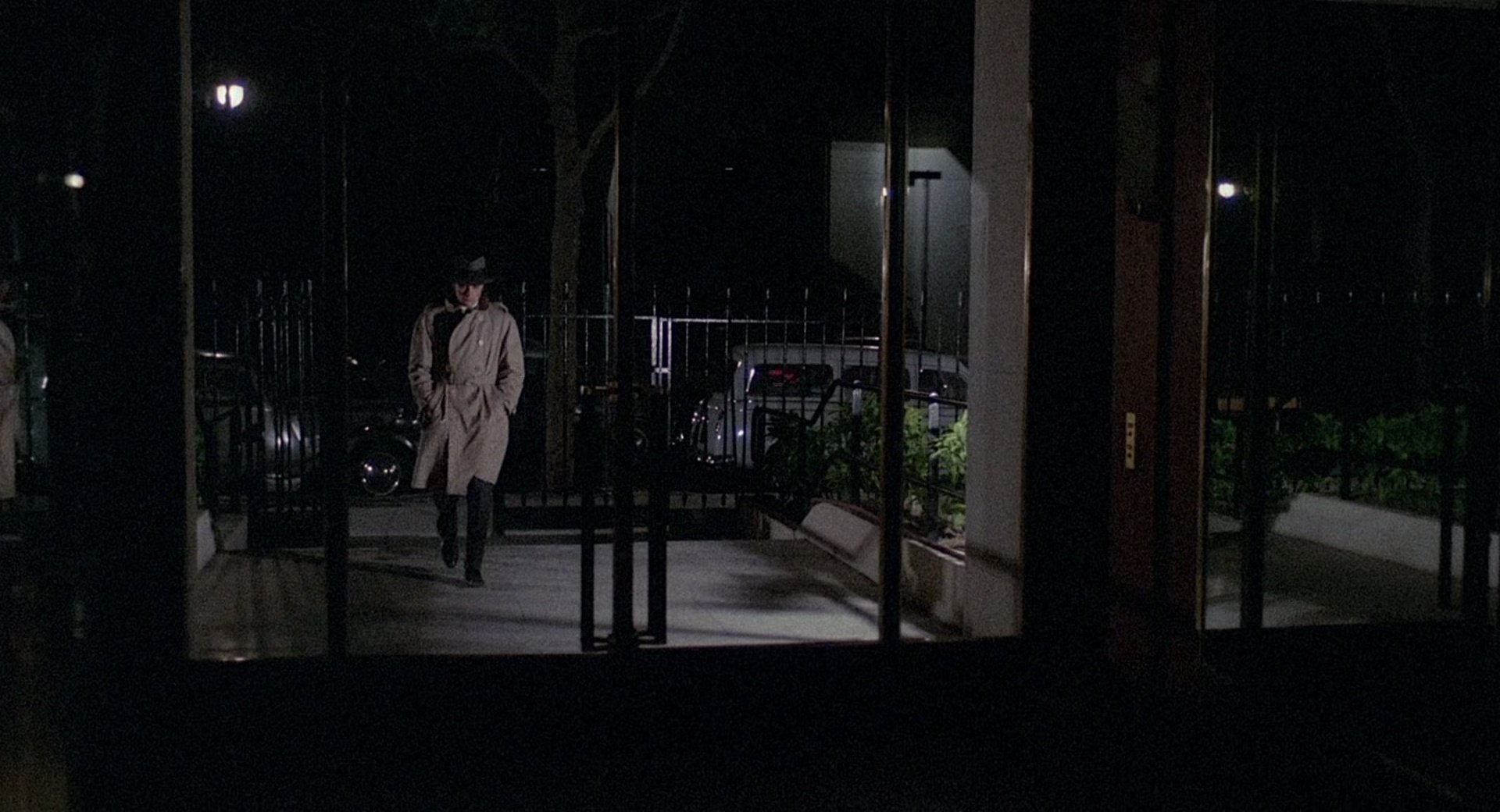 The film is notable for its sparse environments, controlled compositions and cool, desaturated colour palette, which reinforce the protagonist’s emotional detachment and the film’s cold atmosphere. A significant part of the story follows the police investigation, with identification line-ups, coordinated surveillance operations and interrogations emphasising procedural realism. Tension emerges through observation and deduction rather than direct confrontation.