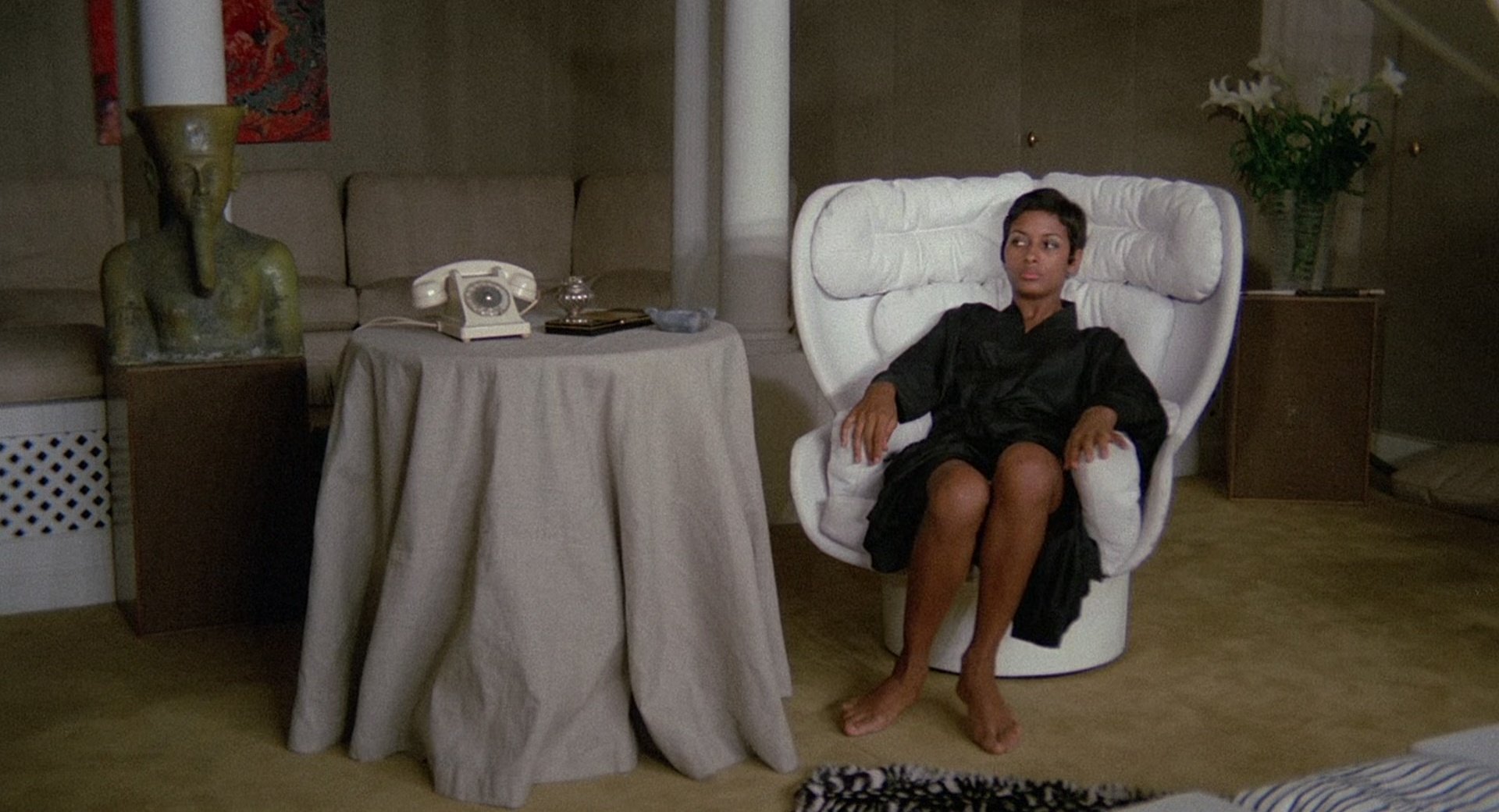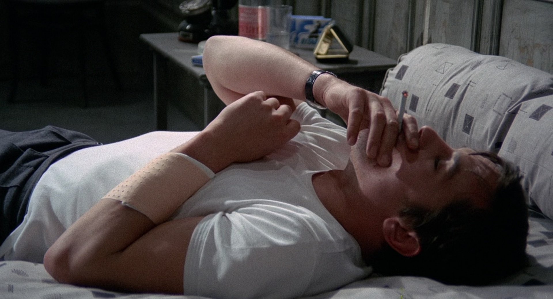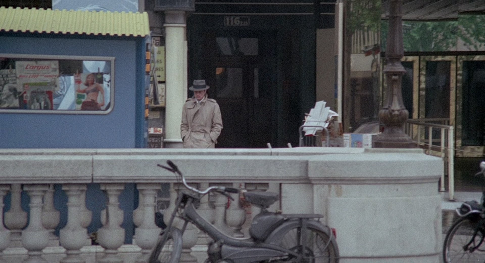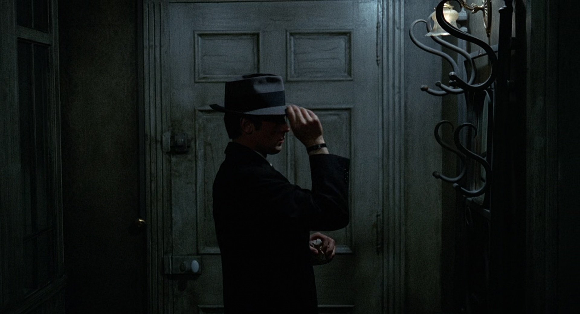 The film is notable for its sparse environments, controlled compositions and cool, desaturated colour palette, which reinforce the protagonist’s emotional detachment and the film’s cold atmosphere. A significant part of the story follows the police investigation, with identification line-ups, coordinated surveillance operations and interrogations emphasising procedural realism. Tension emerges through observation and deduction rather than direct confrontation.