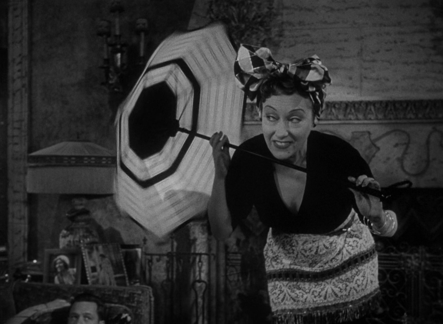 Blending noir fatalism with a scathing industry satire, much of the drama takes place inside a mansion that is staged like a mausoleum. Heavy drapery, monumental staircases, dust-coated surfaces and engulfing shadows transform the decaying interior into a tomb for silent cinema. Within this space, Gloria Swanson‘s Norma Desmond looms large as a ghostly presence, less a former star than a relic who refuses to recognise her own obsolescence.