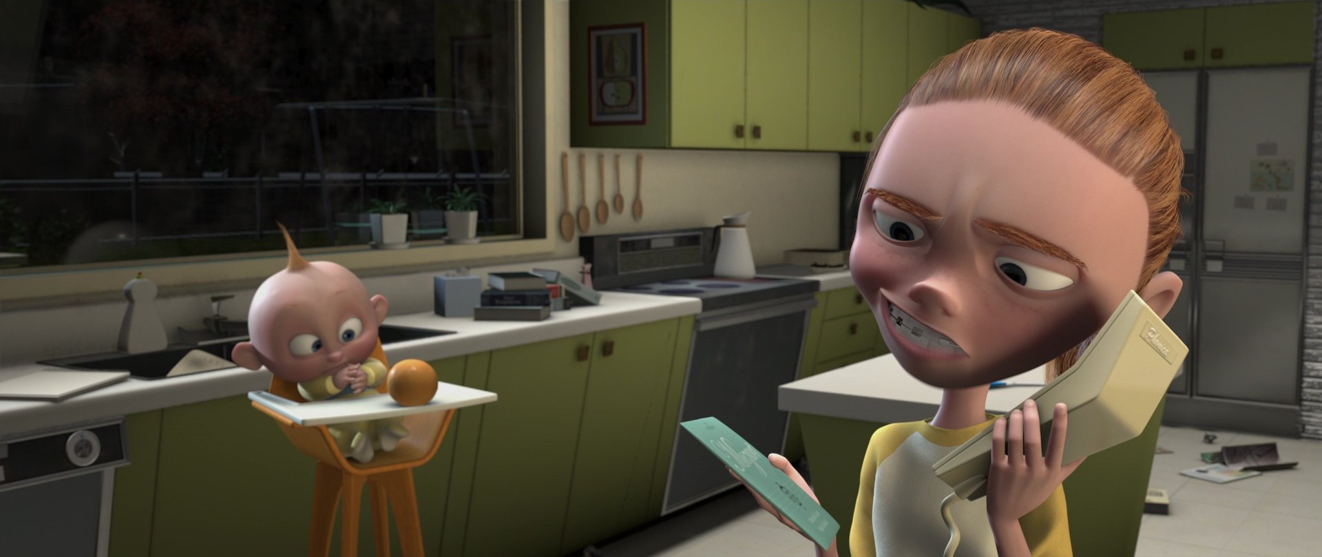 That said, the most visually impressive elements in the film may be young Violet’s long hair. The way they move is uncanny. But there are a lot of gorgeous visual details throughout the movie, from the way the lightning and coloring change to move the Parr family from the more grounded part of their life to the incredible one, or the scale of the shots that make this world look so grandiose. The Increbibles is a turning point in Pixar’s history.