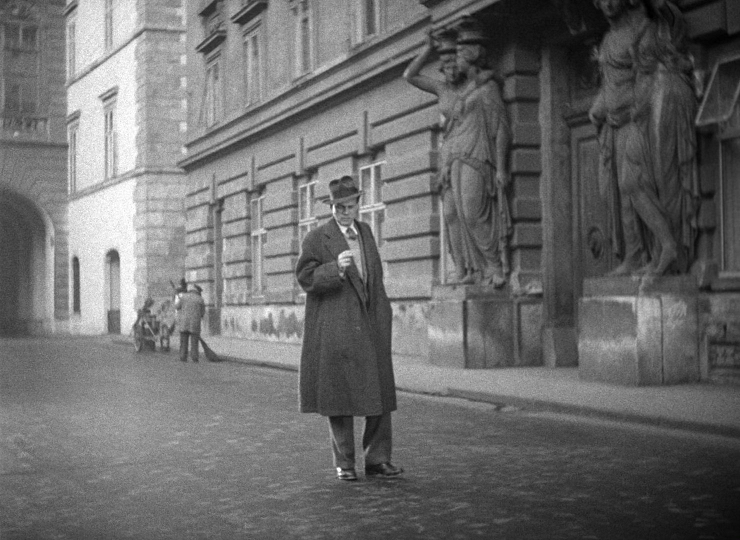 Unlike the claustrophobic studio sets of much American noir, the film makes extensive use of real European locations, grounding its expressionism in the tangible ruins of the era. Its visual identity emerges through pronounced canted angles that distort architectural lines, combined with hard light sources that cast elongated shadows across bombed-out streets. This distortion feels as though it is part of the environment rather than something imposed upon it.