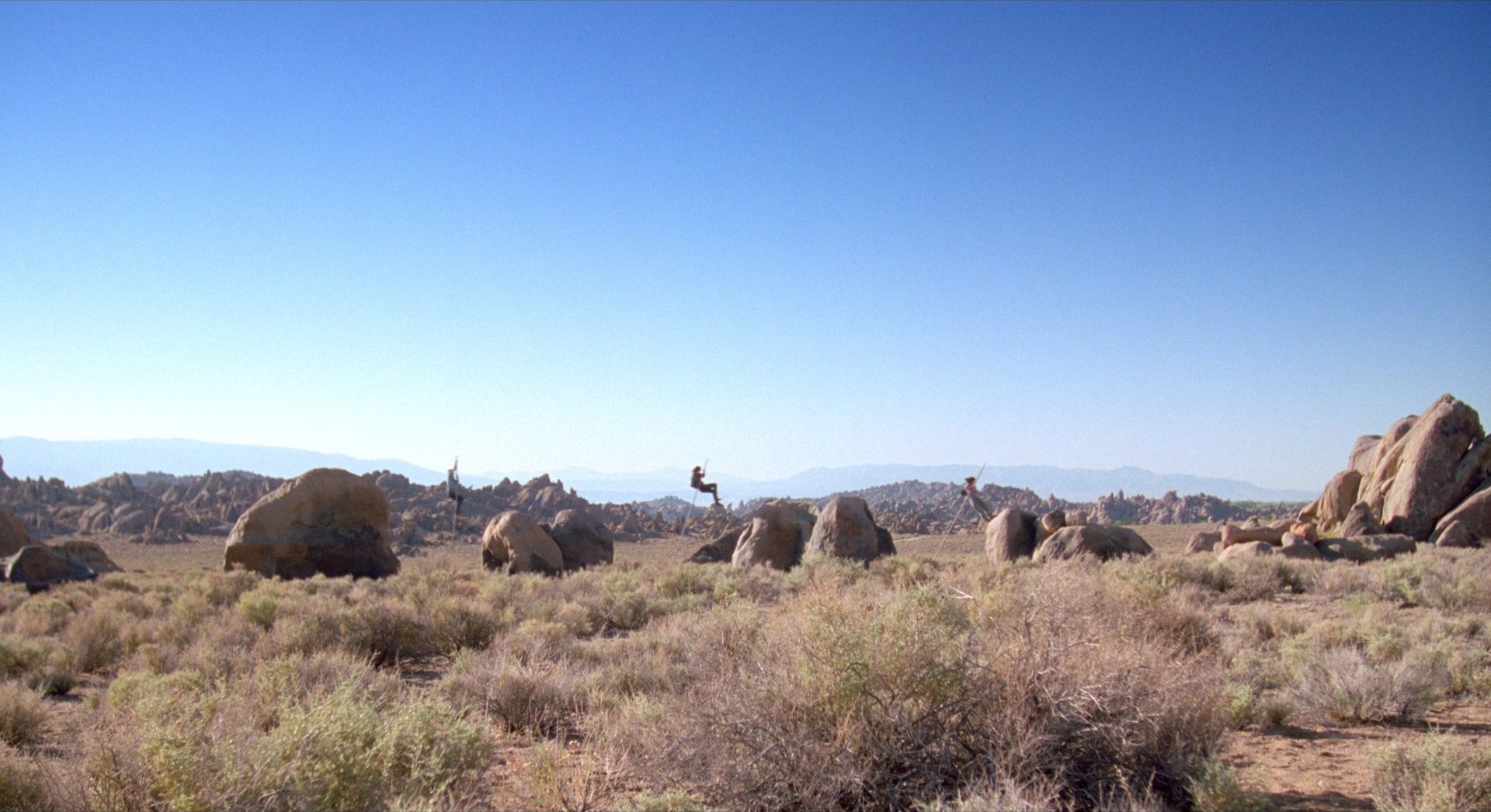 The direction emphasises suggestion as much as spectacle. Moving soil, dust trails following the characters, and collapsing ground signal the creatures’ presence, even when they remain unseen, steadily building tension around the premise. The wide desert landscapes reinforce the characters’ vulnerability, leaving them exposed to threats moving beneath the ground. Alongside the creature mechanics, the film benefits from a strong ensemble cast, a tightly constructed screenplay, and comedic timing that balances the suspense with character-driven humour.