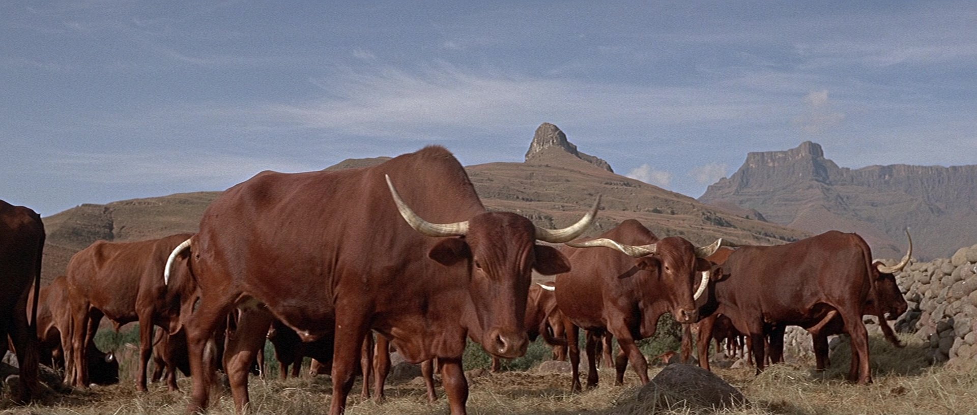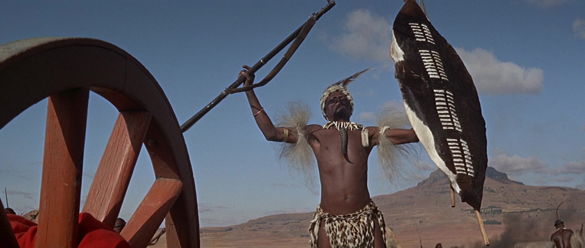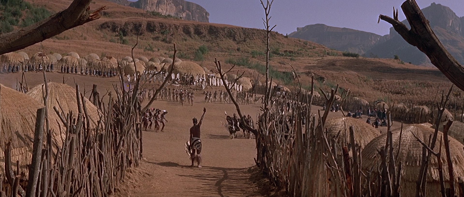 One of the most notable large-scale historical battle films, Zulu was shot on location in South Africa using Technicolor. The result is striking, with vivid skies, sun-bleached terrain and sharply contrasting red British uniforms. Its wide CinemaScope compositions emphasise the defensive barricades versus the open plains filled with thousands of Zulu extras.